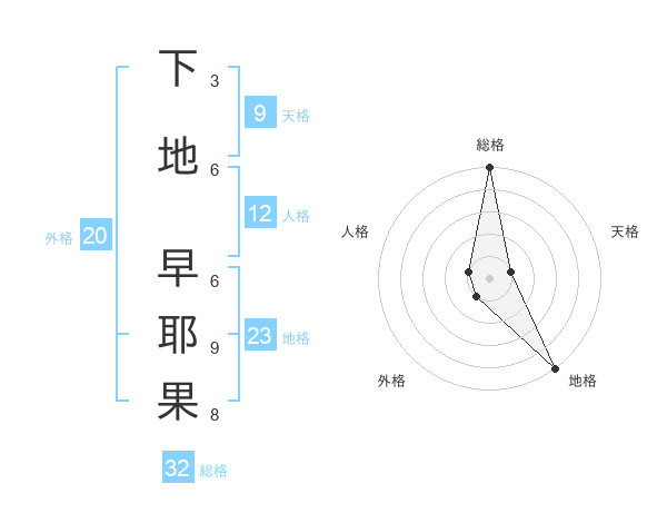 下地 早耶果さんを姓名の画数から五運を鑑定