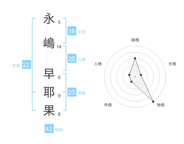 永嶋 早耶果さんを姓名の画数から五運を鑑定