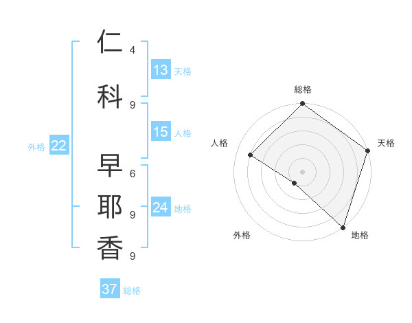 仁科 早耶香さんの総格は37画の5点!