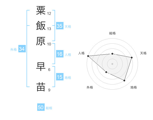 粟飯原 早苗さんを姓名の画数から五運を鑑定