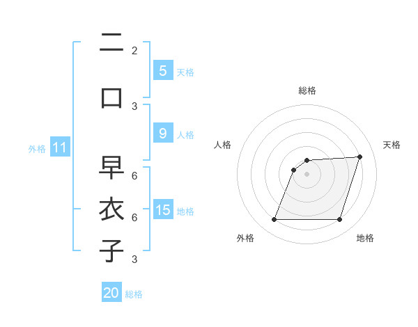 二口 早衣子さんを姓名の画数から五運を鑑定