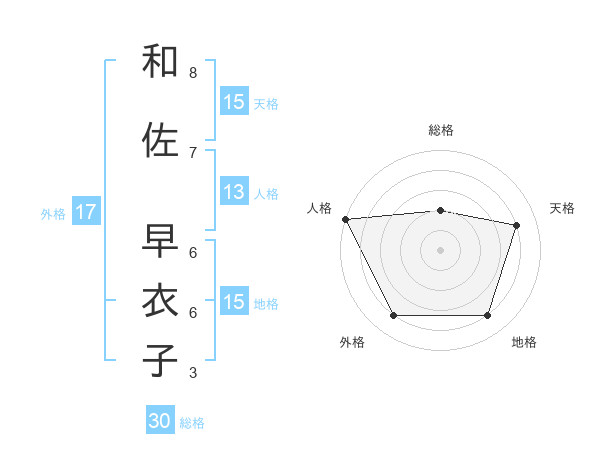 和佐 早衣子さんの総格は30画の2点!