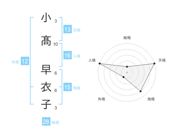 小髙 早衣子さんの天格は13画の5点!