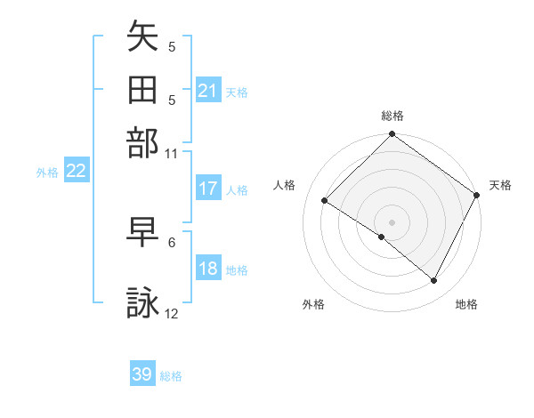 矢田部 早詠さんの総格は39画の5点