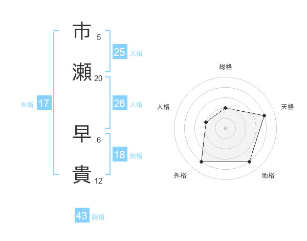 市瀬 早貴さんの天格は25画の4点!