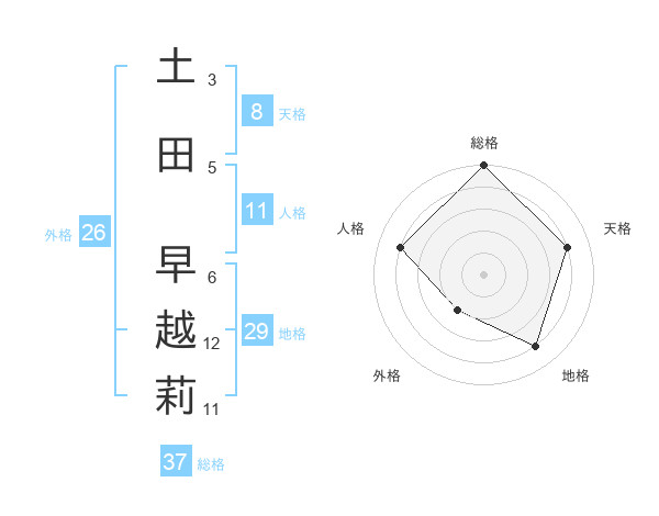 土田 早越莉さんの総格は37画の5点