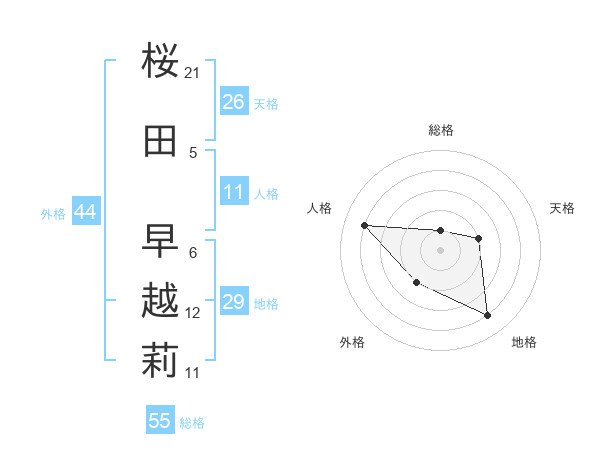 桜田 早越莉さんの総格は55画の1点!