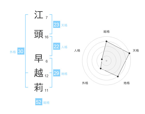 江頭 早越莉さんを姓名の画数から五運を鑑定