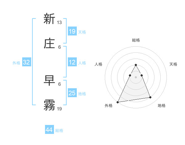 新庄 早霧さんを姓名の画数から五運を鑑定