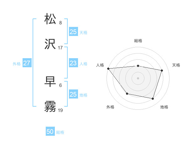 松沢 早霧さんを姓名の画数から五運を鑑定
