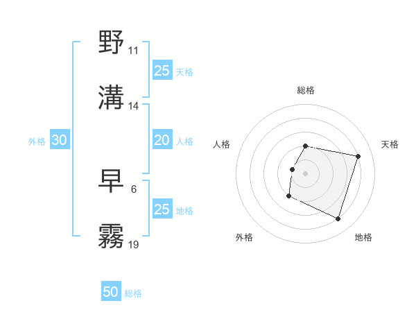 野溝 早霧さんの天格は25画の4点!