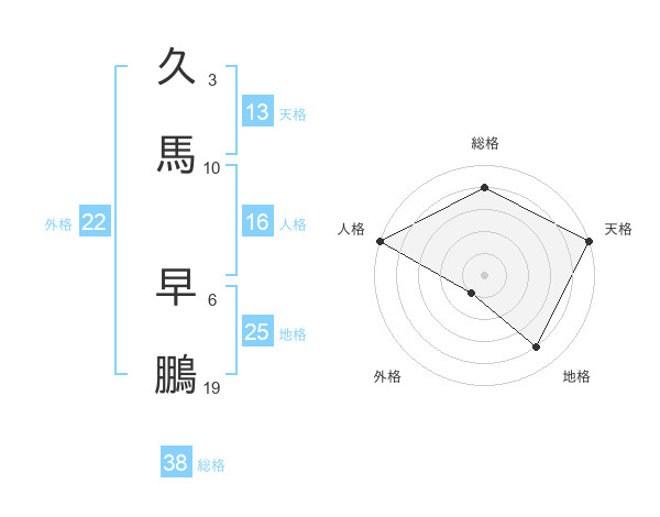 久馬 早鵬さんを姓名の画数から五運を鑑定