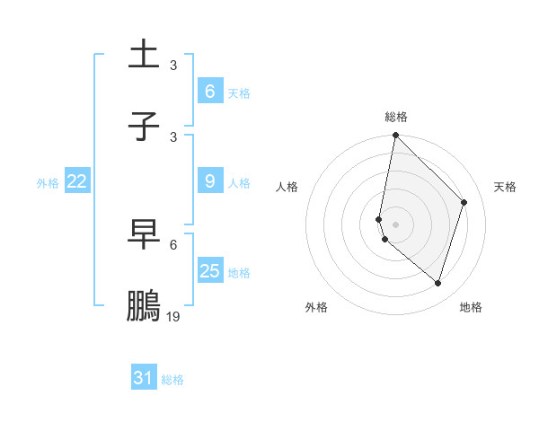土子 早鵬さんを姓名の画数から五運を鑑定