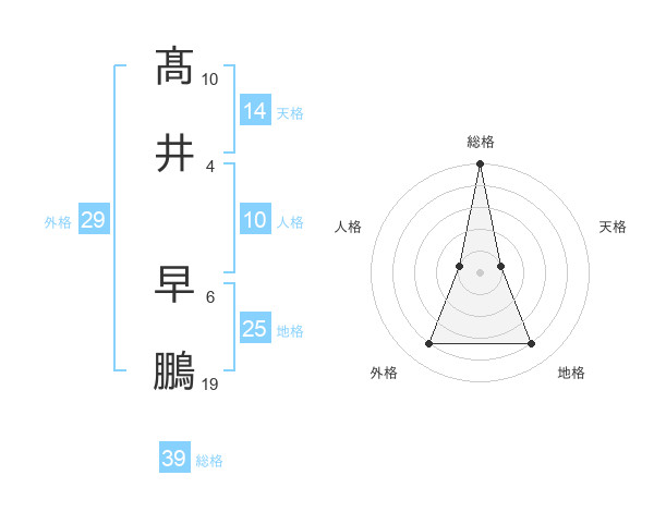 髙井 早鵬さんの総格は39画の5点!