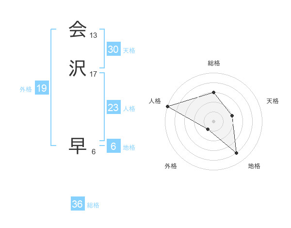 会沢 早さんの外格は19画の1点!