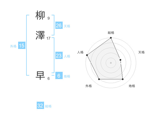 柳澤 早さんの総格は32画の5点!