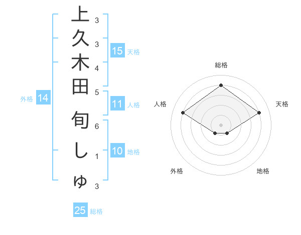 上久木田 旬しゅさんを姓名の画数から五運を鑑定