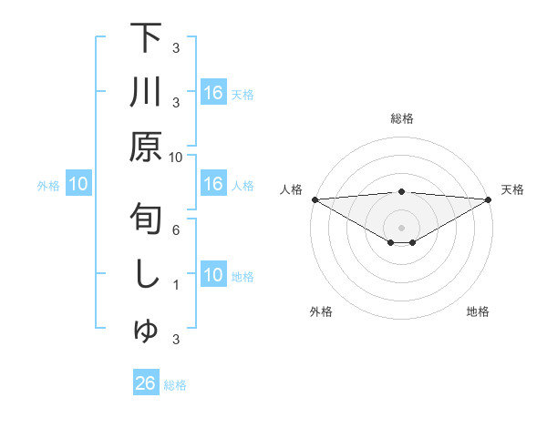 下川原 旬しゅさんを姓名の画数から五運を鑑定