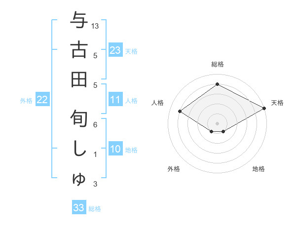 与古田 旬しゅさんを姓名の画数から五運を鑑定