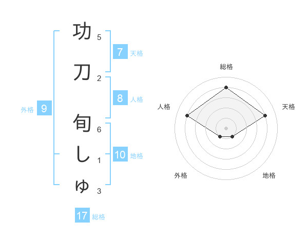 功刀 旬しゅさんの総格は17画の4点!
