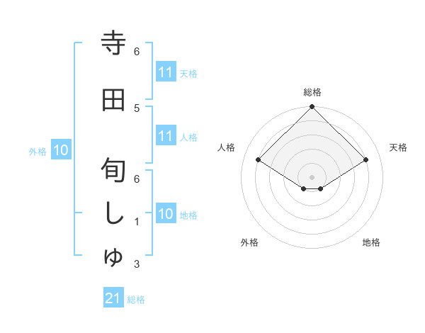 寺田 旬しゅさんを姓名の画数から五運を鑑定