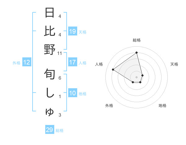 日比野 旬しゅさんを姓名の画数から五運を鑑定