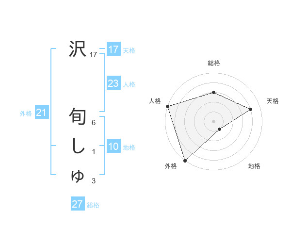 沢 旬しゅさんを姓名の画数から五運を鑑定