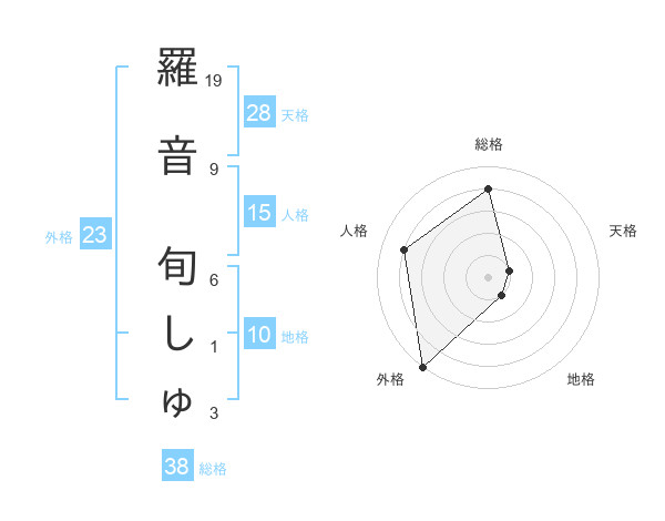羅音 旬しゅさんの総格は38画の4点!