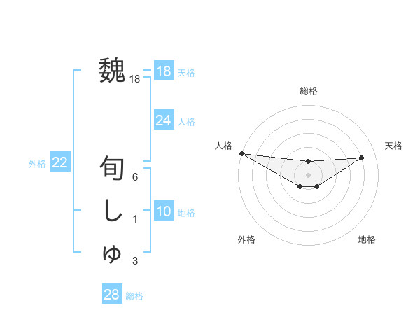 魏 旬しゅさんの天格は18画の4点!