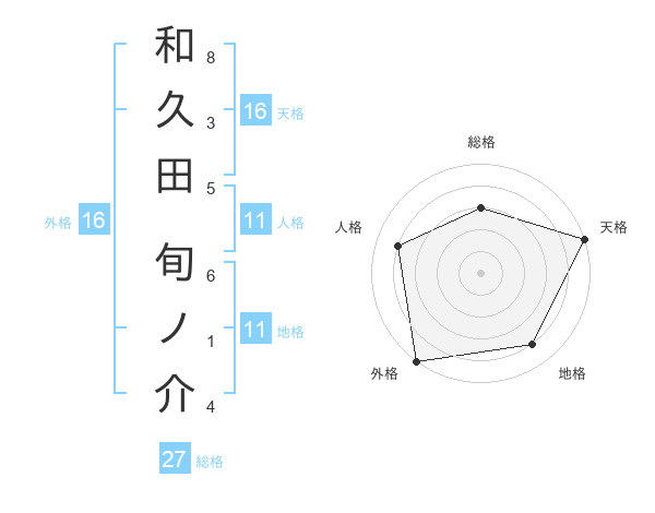 和久田 旬ノ介さんの天格は16画の5点!
