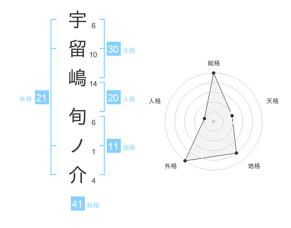宇留嶋 旬ノ介さんの外格は21画の5点!