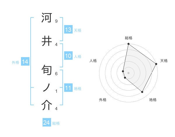 河井 旬ノ介さんを姓名の画数から五運を鑑定