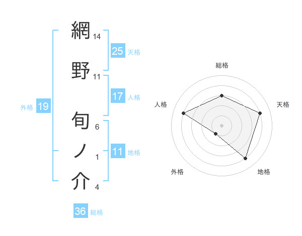 網野 旬ノ介さんを姓名の画数から五運を鑑定