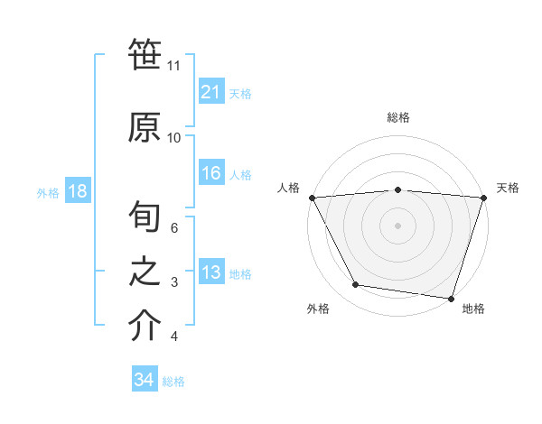 笹原 旬之介さんの天格は21画の5点!