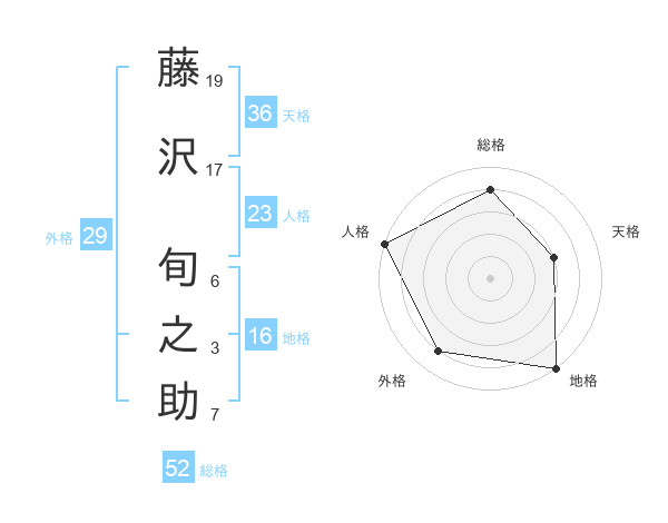 藤沢 旬之助さんを姓名の画数から五運を鑑定