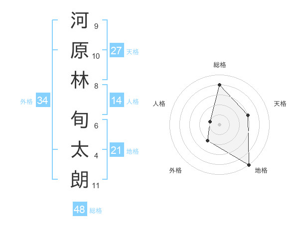 河原林 旬太朗さんを姓名の画数から五運を鑑定