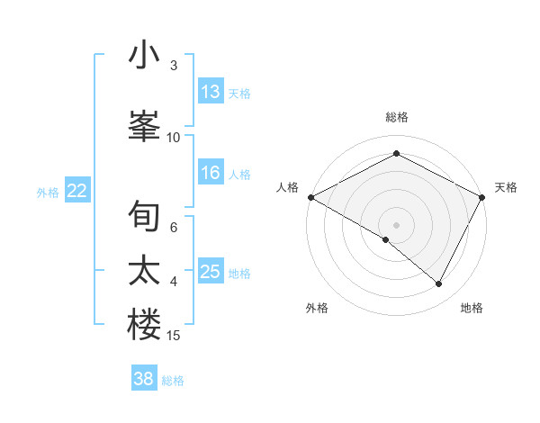 小峯 旬太楼さんを姓名の画数から五運を鑑定