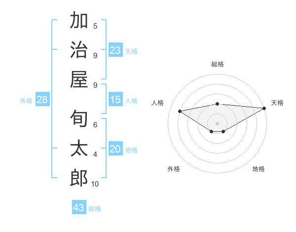 加治屋 旬太郎さんの天格は23画の5点!