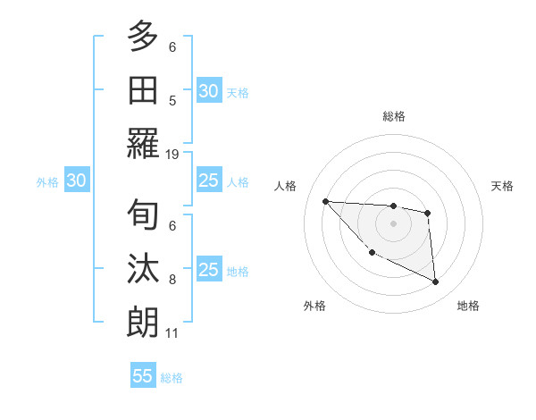 多田羅 旬汰朗さんを姓名の画数から五運を鑑定