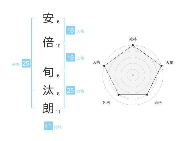 安倍 旬汰朗さんを姓名の画数から五運を鑑定