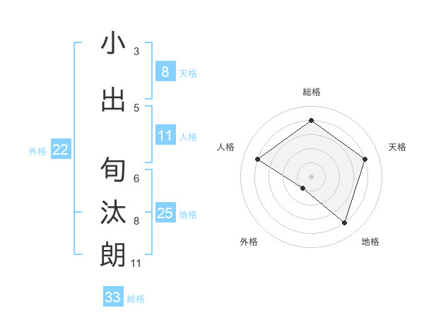 小出 旬汰朗さんを姓名の画数から五運を鑑定