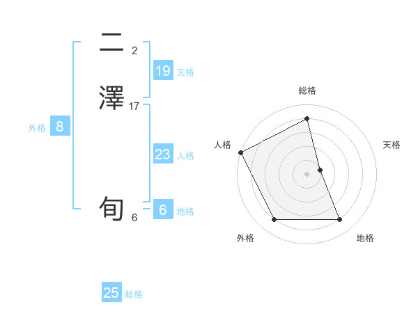 二澤 旬さんの総格は25画の4点!