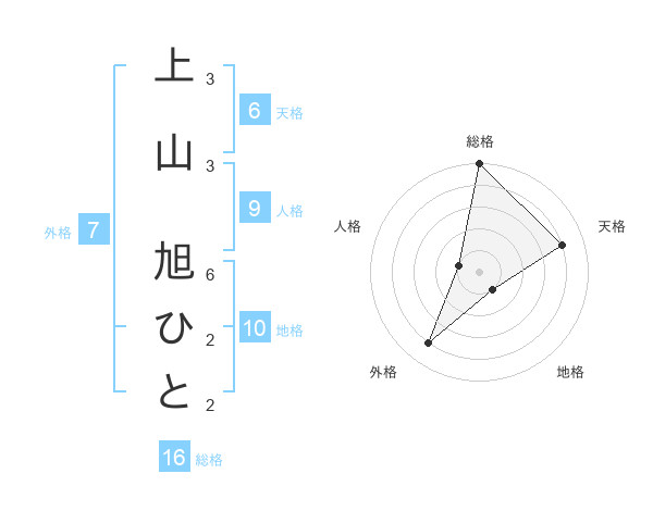 上山 旭ひとさんを姓名の画数から五運を鑑定