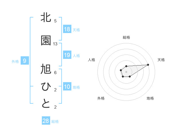 北園 旭ひとさんを姓名の画数から五運を鑑定