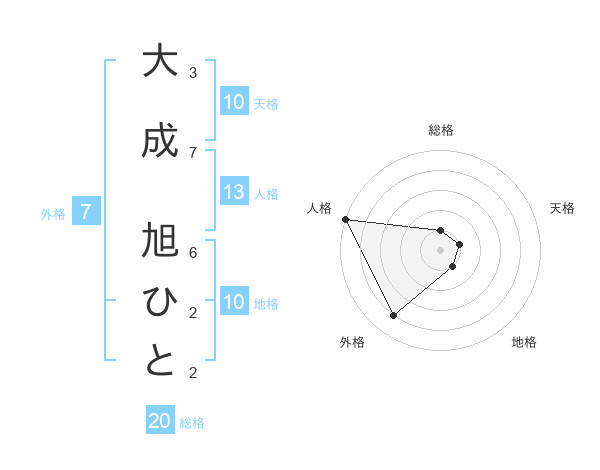 大成 旭ひとさんを姓名の画数から五運を鑑定