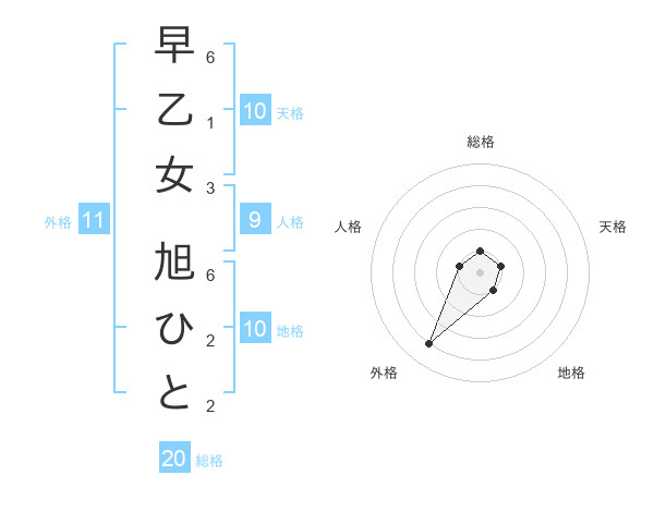 早乙女 旭ひとさんの総格は20画の1点