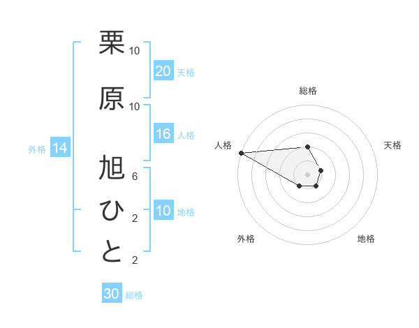 栗原 旭ひとさんを姓名の画数から五運を鑑定