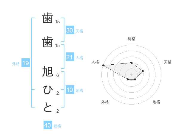 歯歯 旭ひとさんの天格は30画の2点!