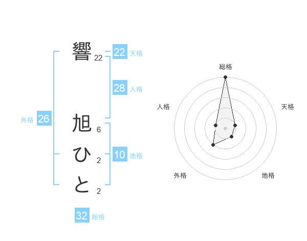 響 旭ひとさんの総格は32画の5点!