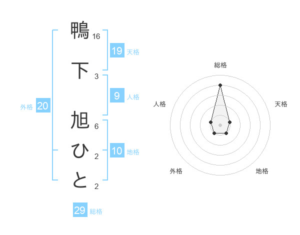 鴨下 旭ひとさんの総格は29画の4点
